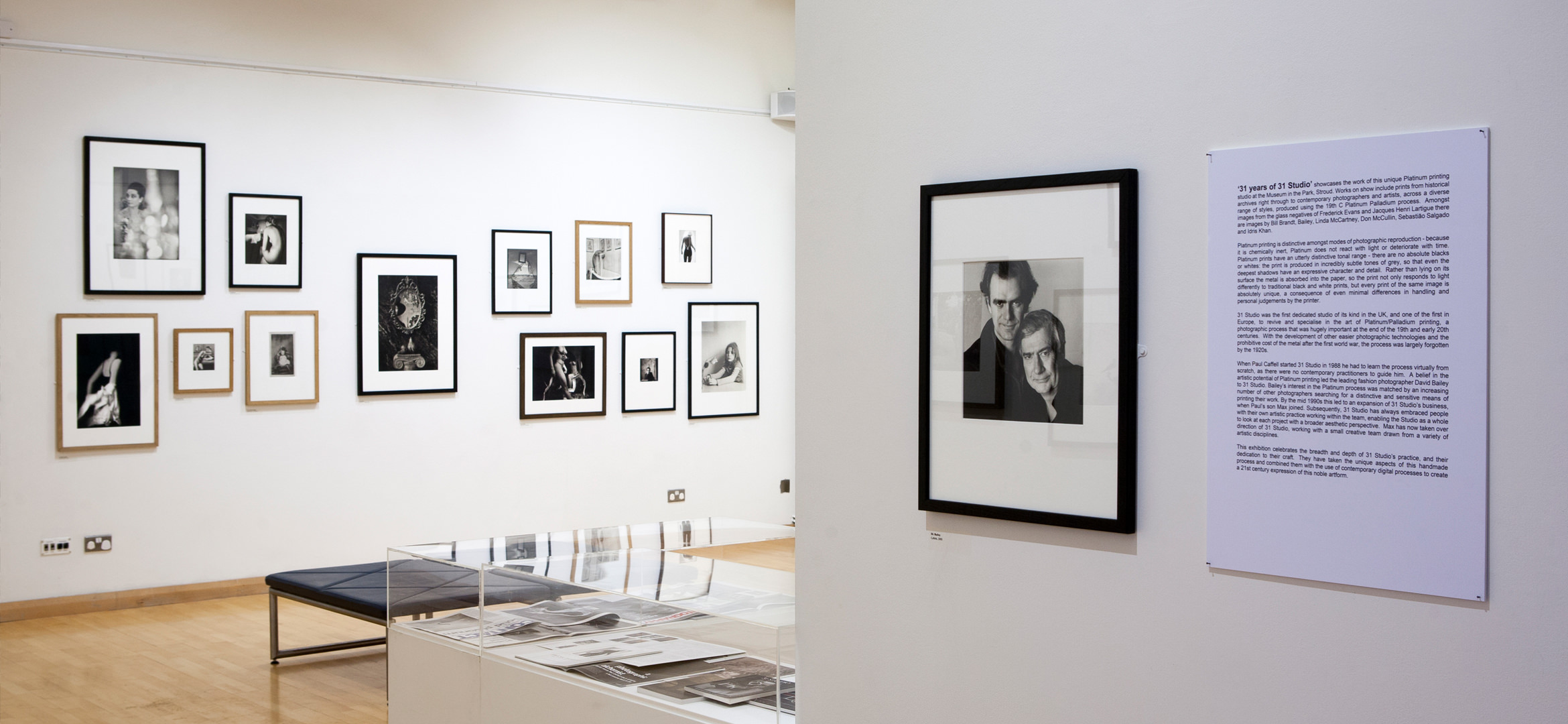 ’31 years of 31 Studio’ showcased the work of the studio at the Museum in the Park, Stroud, from January 1st 2019. Works on show included prints from historical archives right through to contemporary photographers and artists, across a diverse range of styles, produced using the 19th C Platinum Palladium process. Amongst images from the glass negatives of Frederick Evans and Jacques Henri Lartigue there were images by Bill Brandt, Bailey, Linda McCartney, Don McCullin, Sebastião Salgado and Idris Khan.