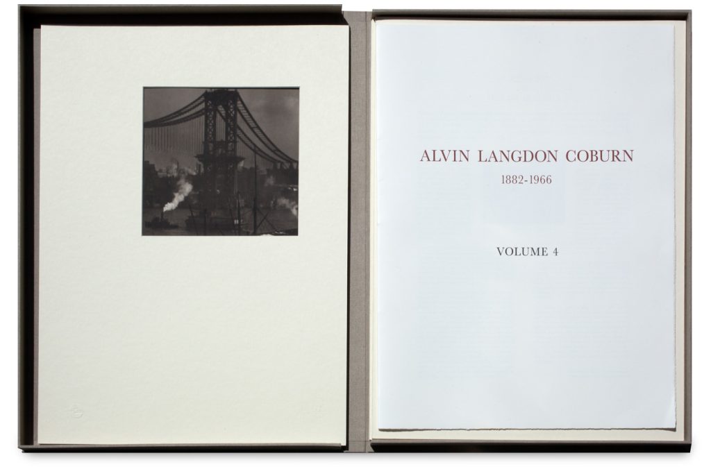 Every Volume also contains a platinum print of Coburn’s self-portrait, “The Copper Plate Press” photographed in 1908. The print sizes vary, as each image has been printed full-frame, with an over-mount illustrating how Coburn determined the composition and final size of his prints.